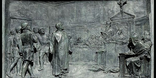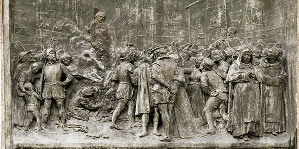 রোমান ইনকুইজিশনের ইনকুইজিটর কার্ডিনাল বেলারমাইন ব্রুনোকে তাঁর ভুল স্বীকার করে ক্ষমা চাইতে বলেন। কিন্তু ব্রুনো তা করতে অস্বীকৃতি জানান। ১৬০০ সালের ২০ জানুয়ারি পোপ ৮ম ক্লেমেন্ট ব্রুনোকে একজন ধর্মদ্রোহী বলে রায় দেন ও তাঁকে মৃত্যুদণ্ড দেন। রায় শুনে ব্রুনো বিচারকদের শাসিয়ে দিয়ে বলেন, “ আপনারা হয়তো আমার সাথে হেরে যাবার ভয়ে আমার বিরুদ্ধে এই রায় দিয়েছেন। আমি এটি গ্রহণ করলাম।‘ ১৭ ফেব্রুয়ারি তাঁকে রোমের কেন্দ্রীয় বাজার Campo de’ Fiori-এ নিয়ে যাওয়া হয়। সেখানে তাঁকে সবার সামনে খুঁটির সাথে বেঁধে পুড়িয়ে মারা হয়। তাঁর দেহভস্ম এরপর ছড়িয়ে দেয়া হয় টিবের নদীতে। ব্রুনো তাঁর মৃত্যুর পর প্রভূত সম্মান লাভ করেন। মহাশূন্য নিয়ে তাঁর মতবাদই ধীরে ধীরে সবার কাছে সঠিক বলে পরিগণিত হয়। তাঁকে ‘বিজ্ঞানের জন্য শহীদ’ বলে সম্মান জানানো হয়। তাঁর জন্য রইলো অনেক অনেক শ্রদ্ধা।