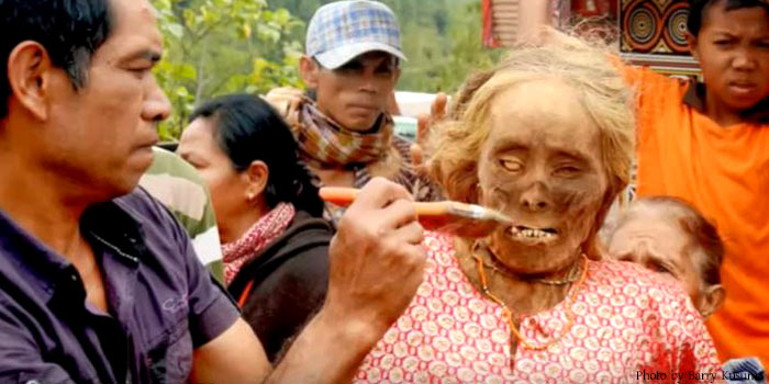কখনও শুনেছেন কবর থেকে মৃতদেহ তুলে তাদের সাজানো হচ্ছে! শোনা তো দূরের কথা এরকম কিছু ভাবাও যায় না! তবে এই বিষয়টি একেবারেই মিথ্যা নয়, ইন্দোনেশিয়ার তোরাজা গ্রামে চল রয়েছে এমনই একটি অদ্ভুত রীতির। এই রীতির স্থানীয় নাম ‘মানেনে ফেস্টিভাল’ বা ‘মেনেনে ফেস্টিভাল’। যার অর্থ হল মৃতদেহ পরিষ্কার উৎসব।